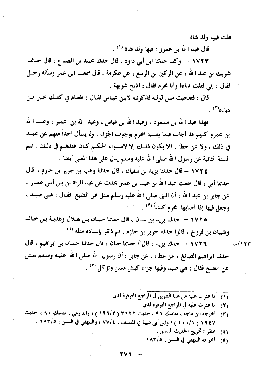 1724 - حَدَّثَنَا يَزِيدُ بْنُ سُفْيَانَ، قَالَ: حَدَّثَنَا وَهْبُ بْنُ جَرِيرِ بْنِ حَازِمٍ، قَالَ: حَدَّثَنَا أَبِي، قَالَ: سَمِعْتُ عَبْدَ اللهِ بْنَ عُبَيْدِ بْنِ عُمَيْرٍ، يُحَدِّثُ عَنْ عَبْدِ الرَّحْمَنِ بْنِ أَبِي عَمَّارٍ، عَنْ جَابِرِ بْنِ عَبْدِ اللهِ، " أَنَّ النَّبِيَّ صَلَّى اللَّهُ عَلَيْهِ وَسَلَّمَ سُئِلَ عَنِ الضَّبْعِ، فَقَالَ: هِيَ صَيْدٌ "، وَجَعَلَ فِيهَا إِذَا أَصَابَهَا الْمُحْرِمُ كَبْشًا،