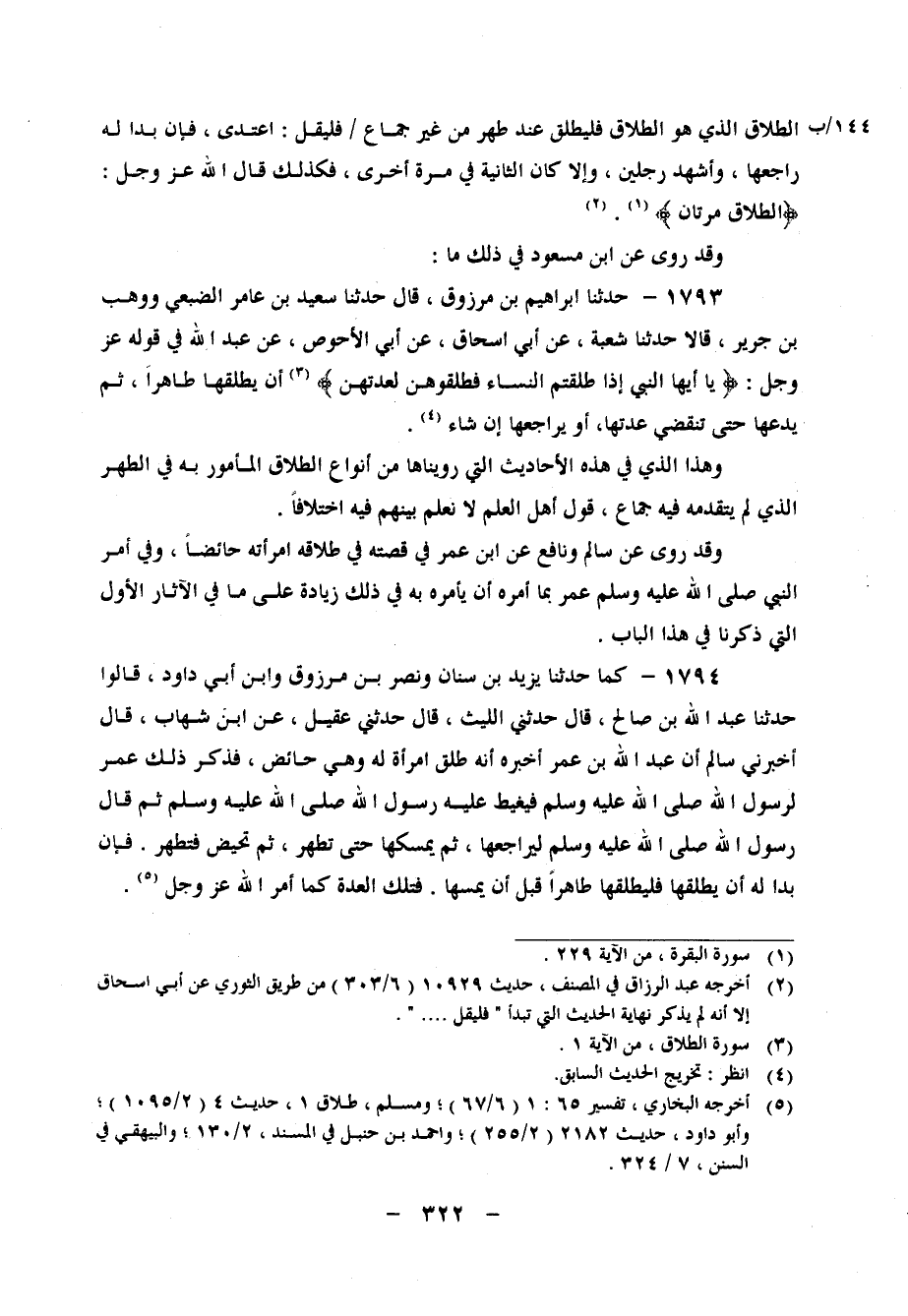 1793 - حَدَّثَنَا إِبْرَاهِيمُ بْنُ مَرْزُوقٍ، قَالَ: حَدَّثَنَا سَعِيدُ بْنُ عَامِرٍ الضُّبَعِيُّ، وَوَهْبُ بْنُ جَرِيرٍ، قَالا: حَدَّثَنَا شُعْبَةُ، عَنْ أَبِي إِسْحَاقَ، عَنْ أَبِي الأَحْوَصِ، عَنْ عَبْدِ اللهِ، فِي قَوْلِهِ عَزَّ وَجَلَّ: " {يَأَيُّهَا النَّبِيُّ إِذَا طَلَّقْتُمُ النِّسَاءَ فَطَلِّقُوهُنَّ لِعِدَّتِهِنَّ} ، أَنْ يُطَلِّقَهَا طَاهِرًا، ثُمَّ يَدَعَهَا حَتَّى تَنْقَضِيَ عِدَّتُهَا، أَوْ يُرَاجِعَهَا إِنْ شَاءَ " وَهَذَا الَّذِي فِي هَذِهِ الأَحَادِيثِ الَّتِي رُوِّينَاهَا مِنْ أَنْوَاعِ الطَّلاقِ الْمَأْمُورِ بِهِ فِي الطُّهْرِ الَّذِي لَمْ يَتَقَدَّمْهُ فِيهِ جِمَاعٌ، قَوْلُ أَهْلِ الْعِلْمِ لَا نَعْلَمُ بَيْنَهُمْ فِيهِ اخْتِلافًا وَقَدْ رُوِيَ عَنْ سَالِمٍ، وَنَافِعٍ، عَنِ ابْنِ عُمَرَ فِي قِصَّتِهِ فِي طَلاقِهِ امْرَأَتَهُ حَائِضًا، وَفِي أَمْرِ النَّبِيِّ صَلَّى اللَّهُ عَلَيْهِ وَسَلَّمَ عُمَرَ بِمَا أَمَرَهُ أَنْ يَأْمُرَهُ بِهِ فِي ذَلِكَ، زِيَادَةٌ عَلَى مَا فِي الآثَارِ الأُوَلِ الَّتِي ذَكَرْنَا فِي هَذَا الْبَابِ