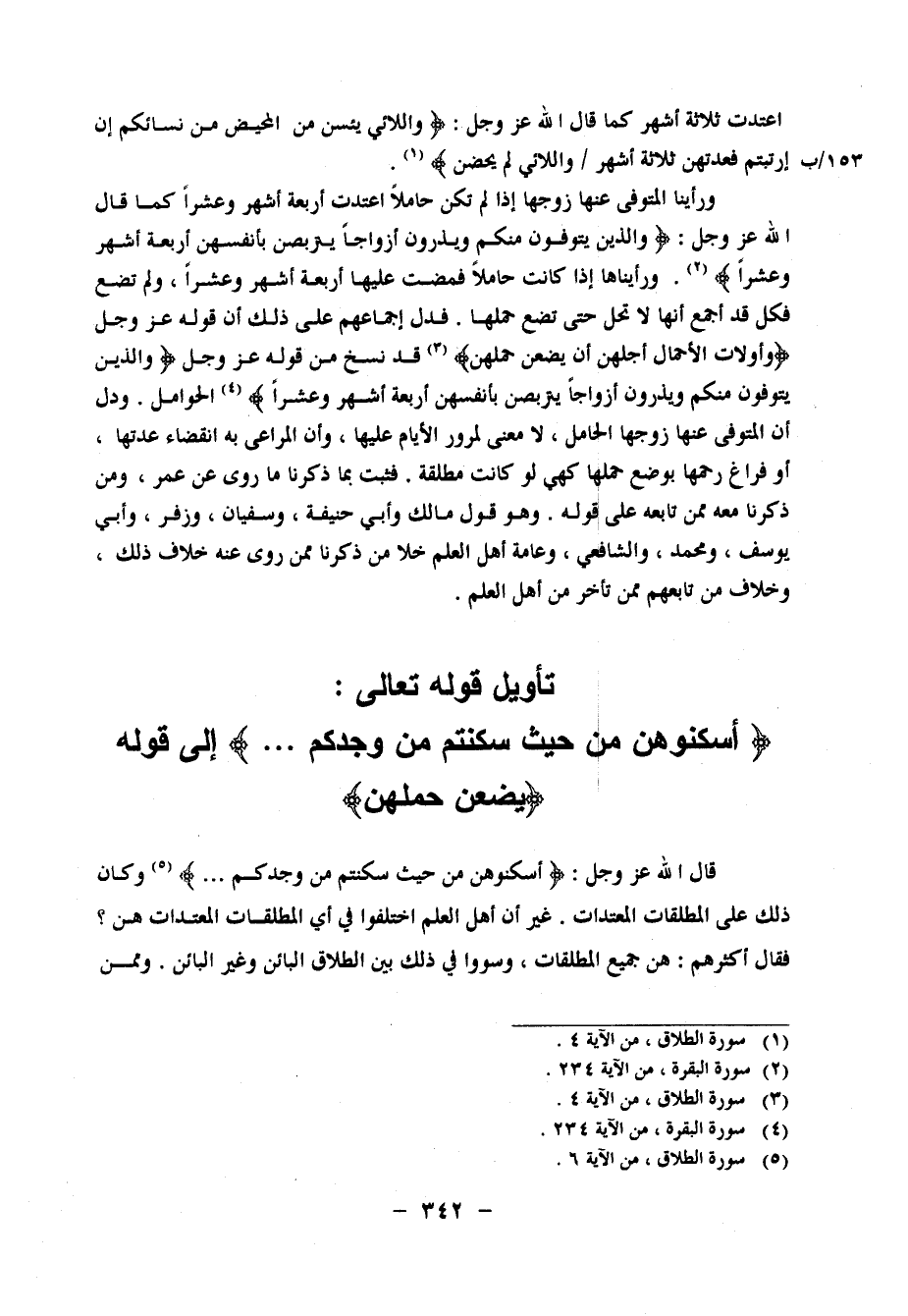 تَأْوِيلُ قَوْلِهِ تَعَالَى: أَسْكِنُوهُنَّ مِنْ حَيْثُ سَكَنْتُمْ مِنْ وُجْدِكُمْ سُورَة الطَّلَاق آيَة، إِلَى قَوْلِهِ: يَضَعْنَ حَمْلَهُنَّ سُورَة الطَّلَاق آيَة