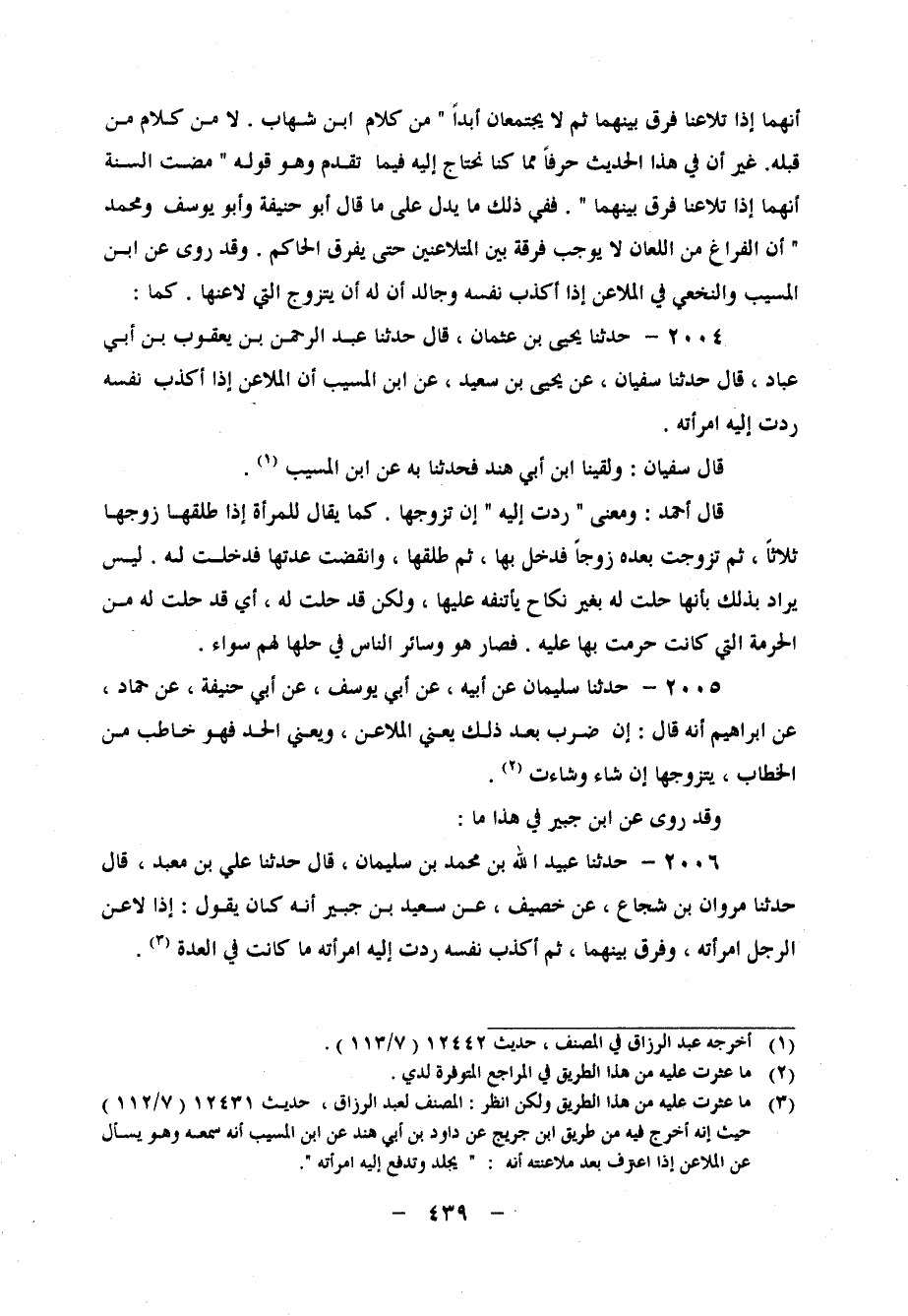 2004 - حَدَّثَنَا يَحْيَى بْنُ عُثْمَانَ، قَالَ: حَدَّثَنَا عَبْدُ الرَّحْمَنِ بْنُ يَعْقُوبَ بْنِ أَبِي عَبَّادٍ، قَالَ: حَدَّثَنَا سُفْيَانُ، عَنْ يَحْيَى بْنِ سَعِيدٍ، عَنِ ابْنِ الْمُسَيِّبِ، " أَنَّ الْمُلاعِنَ إِذَا أَكْذَبَ نَفْسَهُ رُدَّتْ إِلَيْهِ امْرَأَتُهُ " قَالَ سُفْيَانُ: وَلَقِينَا ابْنَ أَبِي هِنْدٍ، فَحَدَّثَنَا بِهِ عَنِ ابْنِ الْمُسَيِّبِ قَالَ أَحْمَدُ: وَمَعْنَى " رُدَّتْ إِلَيْهِ ": أَنْ تَزَوَّجَهَا، كَمَا يُقَالُ لِلْمَرْأَةِ إِذَا طَلَّقَهَا زَوْجُهَا ثَلاثًا، ثُمَّ تَزَوَّجَتْ بَعْدَهُ زَوْجًا فَدَخَلَ بِهَا، ثُمَّ طَلَّقَهَا، وَانْقَضَتْ عِدَّتُهَا فَدَخَلَتْ لَهُ، لَيْسَ يُرَادُ بِذَلِكَ بِأَنَّهَا حَلَّتْ لَهُ بِغَيْرِ نِكَاحٍ يَأْتَنِفُهُ عَلَيْهَا، وَلَكِنْ قَدْ حَلَّتْ لَهُ، أَيْ قَدْ حَلَّتْ لَهُ مِنَ الْحُرْمَةِ الَّتِي كَانَتْ حَرُمَتْ بِهَا عَلَيْهِ، فَصَارَ هُوَ وَسَائِرُ النَّاسِ فِي حِلِّهَا لَهُمْ سَوَاءً