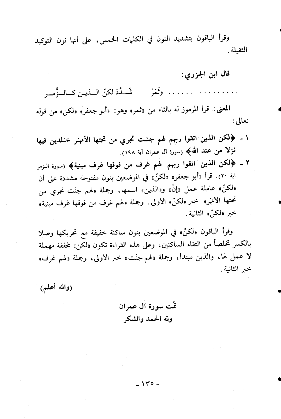 (والله أعلم) تمّت سورة آل عمران ولله الحمد والشكر