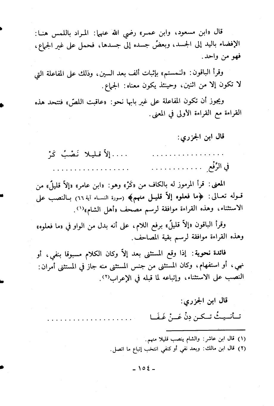 وقرأ الباقون «إلّا قليل» برفع اللام، على أنه بدل من الواو في «ما فعلوه» وهذه القراءة موافقة لرسم بقية المصاحف.