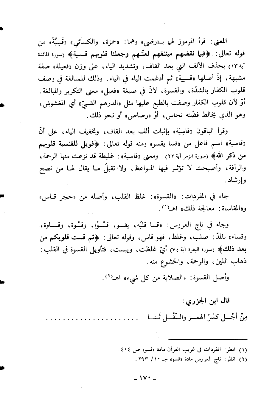 (2) انظر: تاج العروس مادة «قسو» ج 10/ 293.