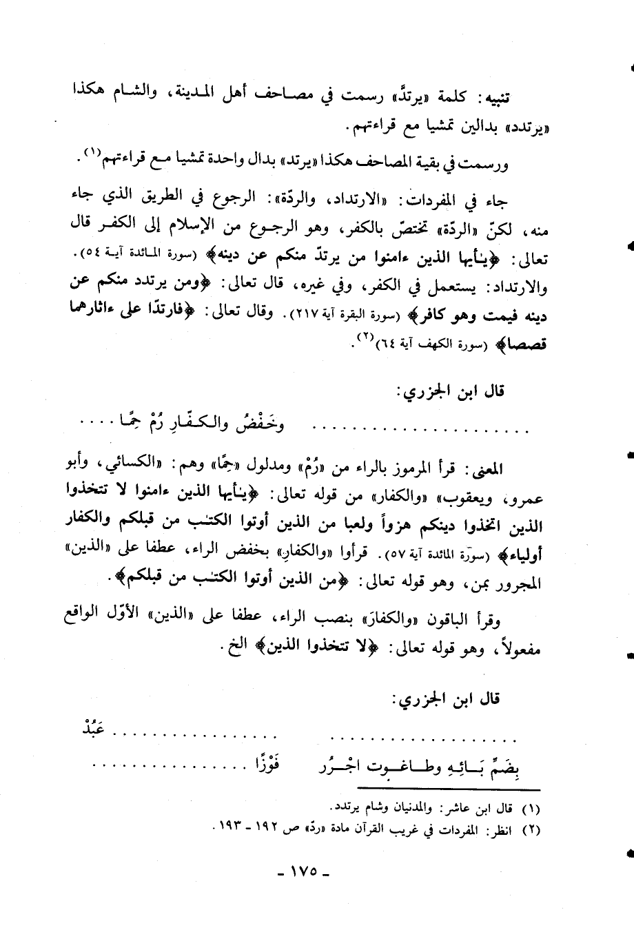 (2) انظر: المفردات في غريب القرآن مادة «ردّ» ص 192 - 193.