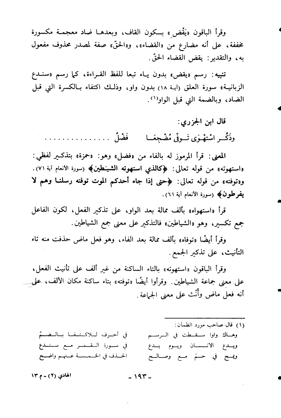 (1) قال صاحب مورد الظمآن: