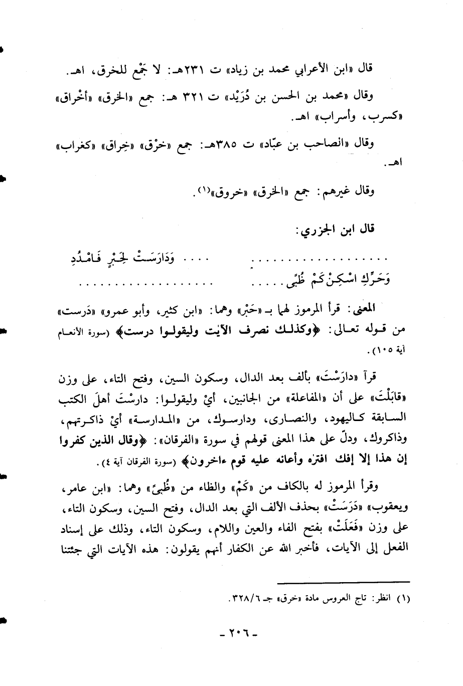 (1) انظر: تاج العروس مادة «خرق» ج 6/ 328.