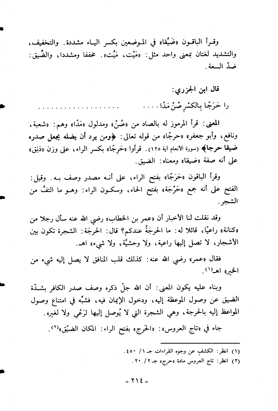 (2) انظر: تاج العروس مادة «حرج» ج 2/ 20.