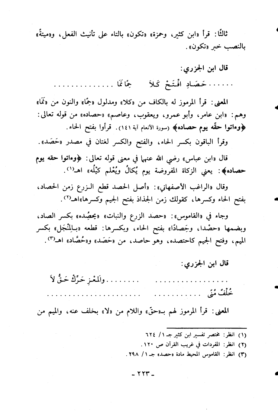 (3) انظر: القاموس المحيط مادة «حصد» ج 1/ 298.
