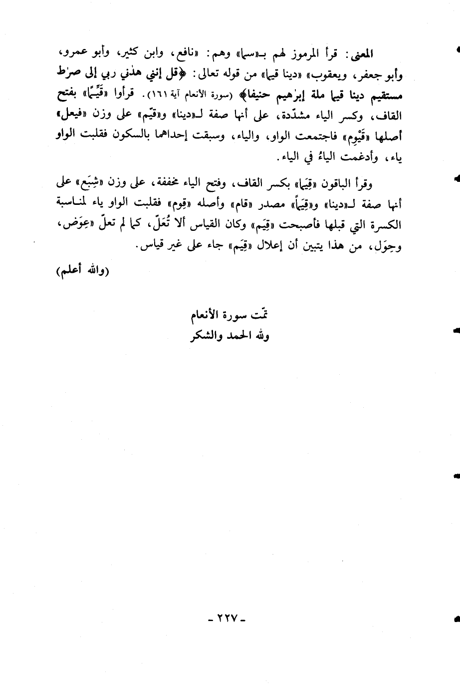 (والله أعلم) تمّت سورة الأنعام ولله الحمد والشكر