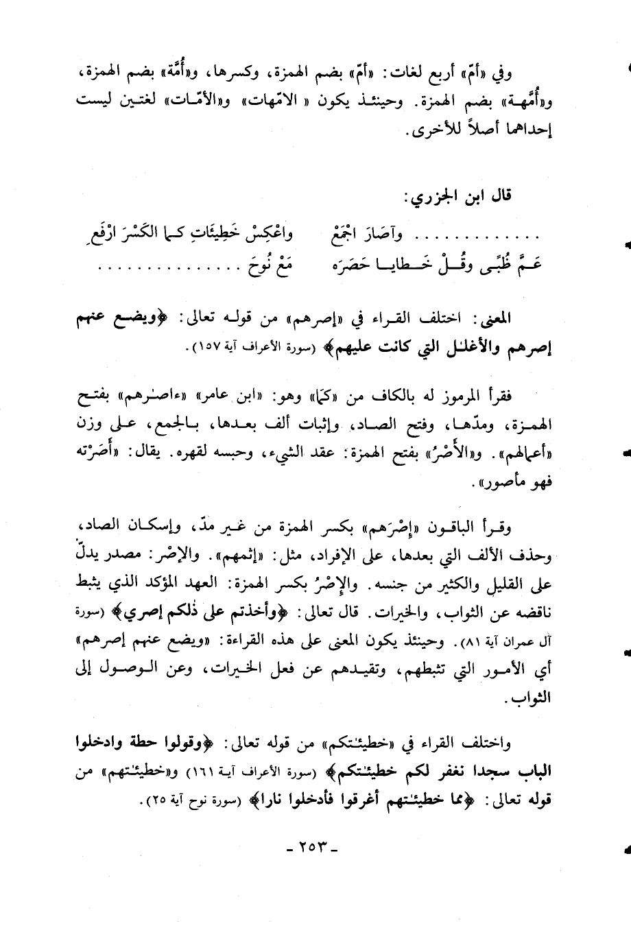 المعنى: اختلف القراء في «إصرهم» من قوله تعالى: وَيَضَعُ عَنْهُمْ إِصْرَهُمْ وَالْأَغْلالَ الَّتِي كانَتْ عَلَيْهِمْ (سورة الأعراف آية 157).