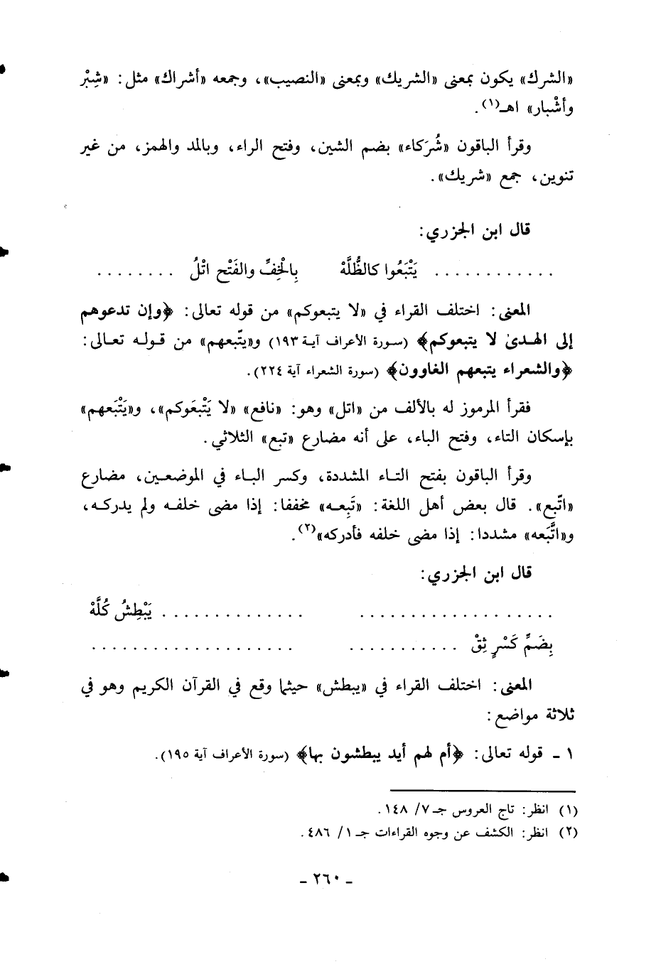 (2) انظر: الكشف عن وجوه القراءات ج 1/ 486.