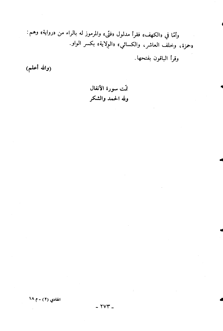 (والله أعلم) تمّت سورة الأنفال ولله الحمد والشكر