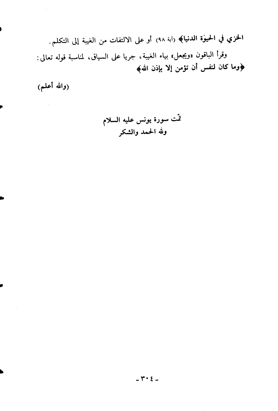 وَما كانَ لِنَفْسٍ أَنْ تُؤْمِنَ إِلَّا بِإِذْنِ اللَّهِ (والله أعلم) تمّت سورة يونس عليه السلام ولله الحمد والشكر