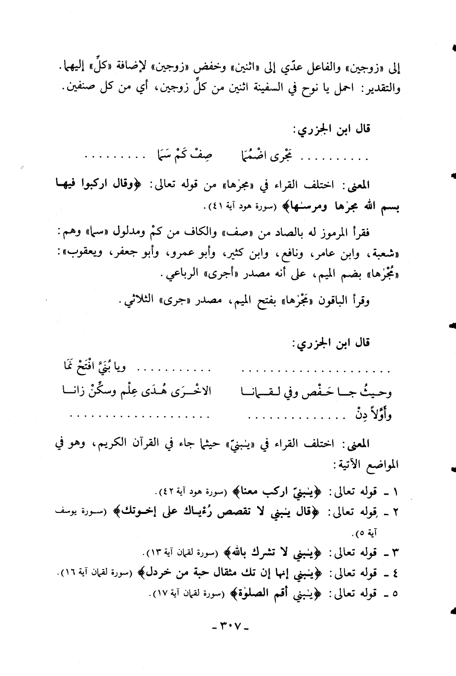 المعنى: اختلف القراء في «يبنيّ» حيثما جاء في القرآن الكريم، وهو في المواضع الآتية: