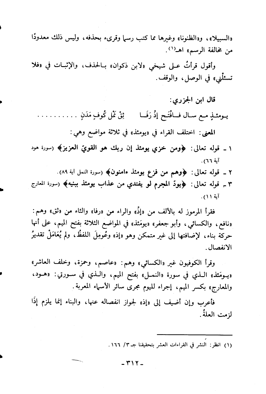 (1) انظر: النشر في القراءات العشر بتحقيقنا ج 3/ 166.