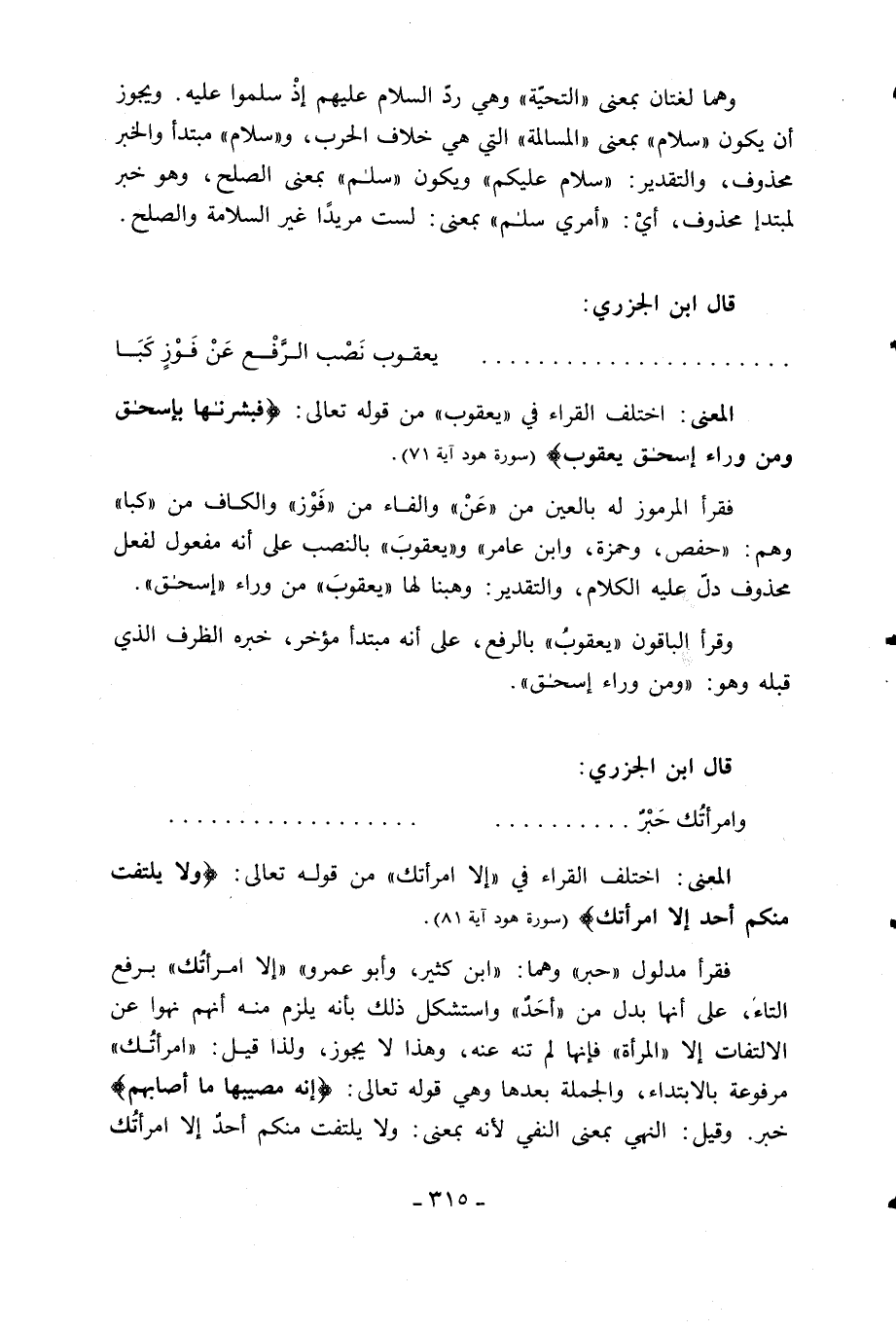 المعنى: اختلف القراء في «يعقوب» من قوله تعالى: فَبَشَّرْناها بِإِسْحاقَ وَمِنْ وَراءِ إِسْحاقَ يَعْقُوبَ (سورة هود آية 71).
