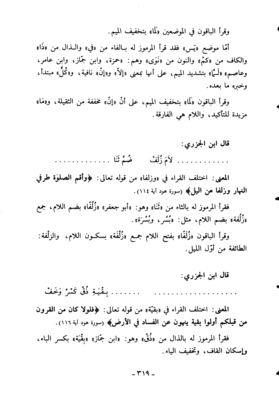 المعنى: اختلف القراء في «وزلفا» من قوله تعالى: وَأَقِمِ الصَّلاةَ طَرَفَيِ النَّهارِ وَزُلَفاً مِنَ اللَّيْلِ (سورة هود آية 114).