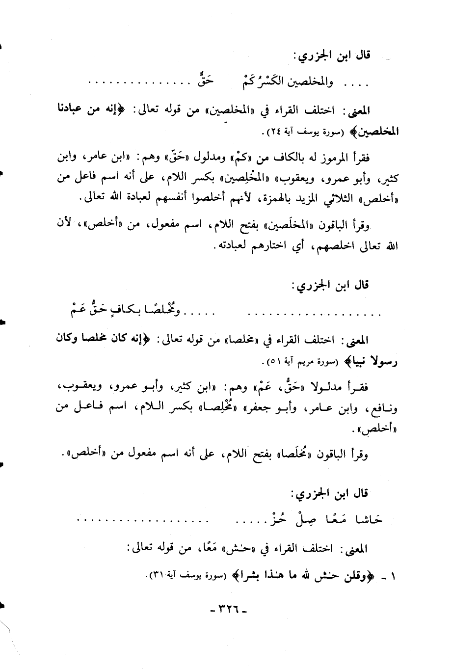 فقرأ مدلولا «حقّ، عم» وهم: «ابن كثير، وأبو عمرو، ويعقوب، ونافع، وابن عامر، وأبو جعفر» «مخلصا» بكسر اللام، اسم فاعل من «أخلص».