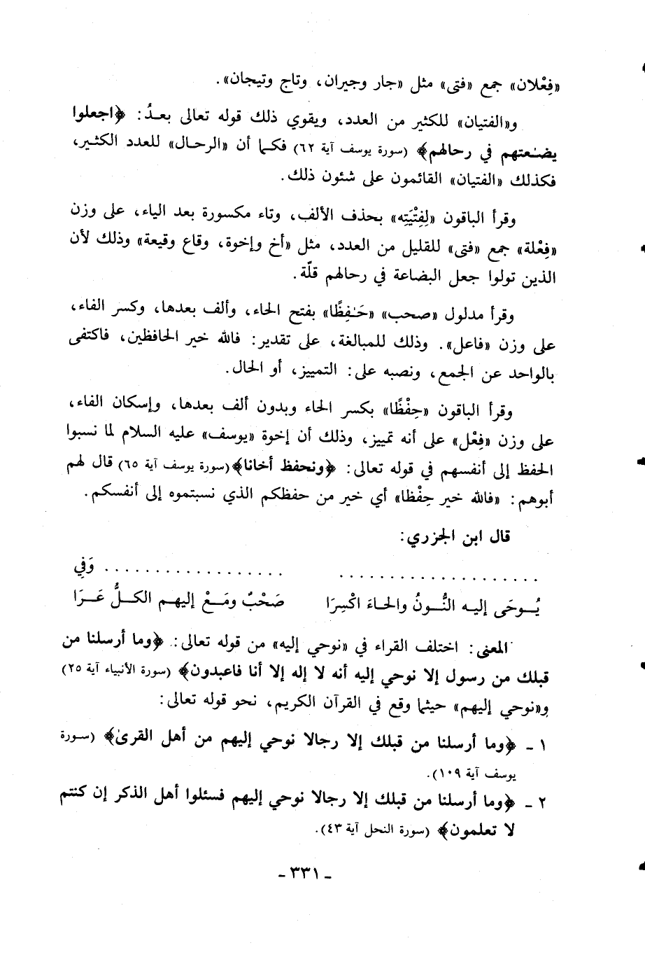 المعنى: اختلف القراء في «نوحي إليه» من قوله تعالى: وَما أَرْسَلْنا مِنْ قَبْلِكَ مِنْ رَسُولٍ إِلَّا نُوحِي إِلَيْهِ أَنَّهُ لا إِلهَ إِلَّا أَنَا فَاعْبُدُونِ (سورة الأنبياء آية 25) و «نوحي إليهم» حيثما وقع في القرآن الكريم، نحو قوله تعالى:
