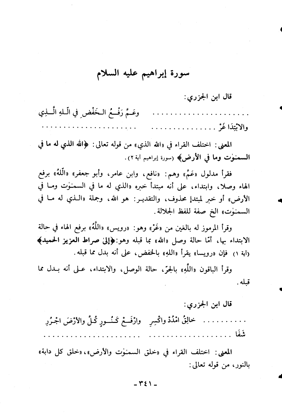 المعنى: اختلف القراء في «الله الذي» من قوله تعالى: اللَّهِ الَّذِي لَهُ ما فِي السَّماواتِ وَما فِي الْأَرْضِ (سورة إبراهيم آية 2).