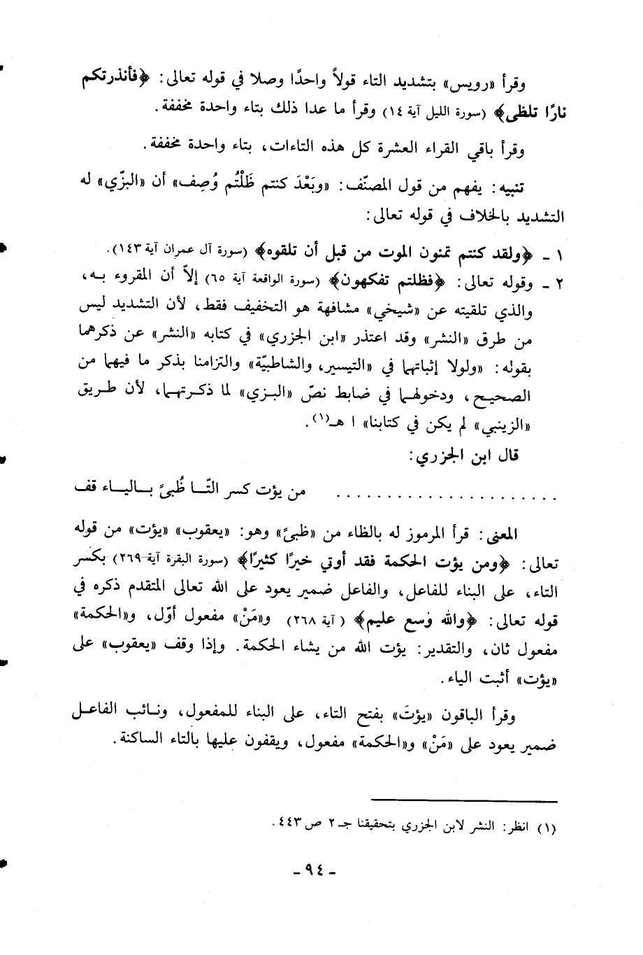 (1) انظر: النشر لابن الجزري بتحقيقنا ج 2 ص 443.
