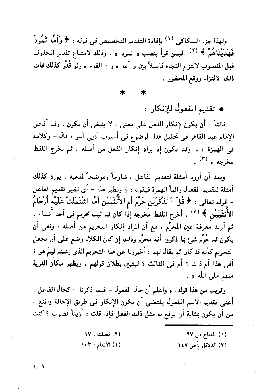 أمثلة لتقديم المفعول والياً الهمزة فيقول: " ونظير هذا - أي نظير تقديم الفاعل