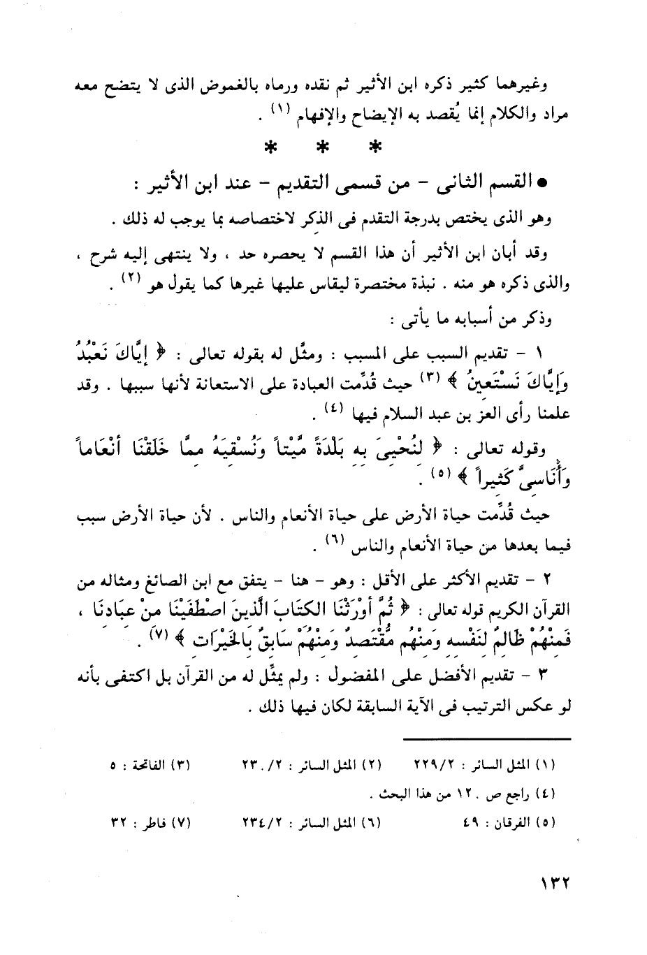 * القسم الثاني - من قسمى التقديم - عند ابن الأثير: