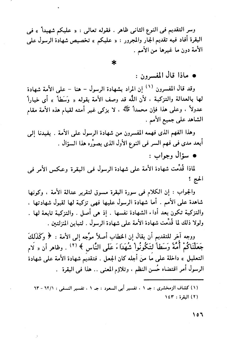 لماذا قُدمت شهادة الأمة على شهادة الرسول في البقرة وعكس الأمر فى