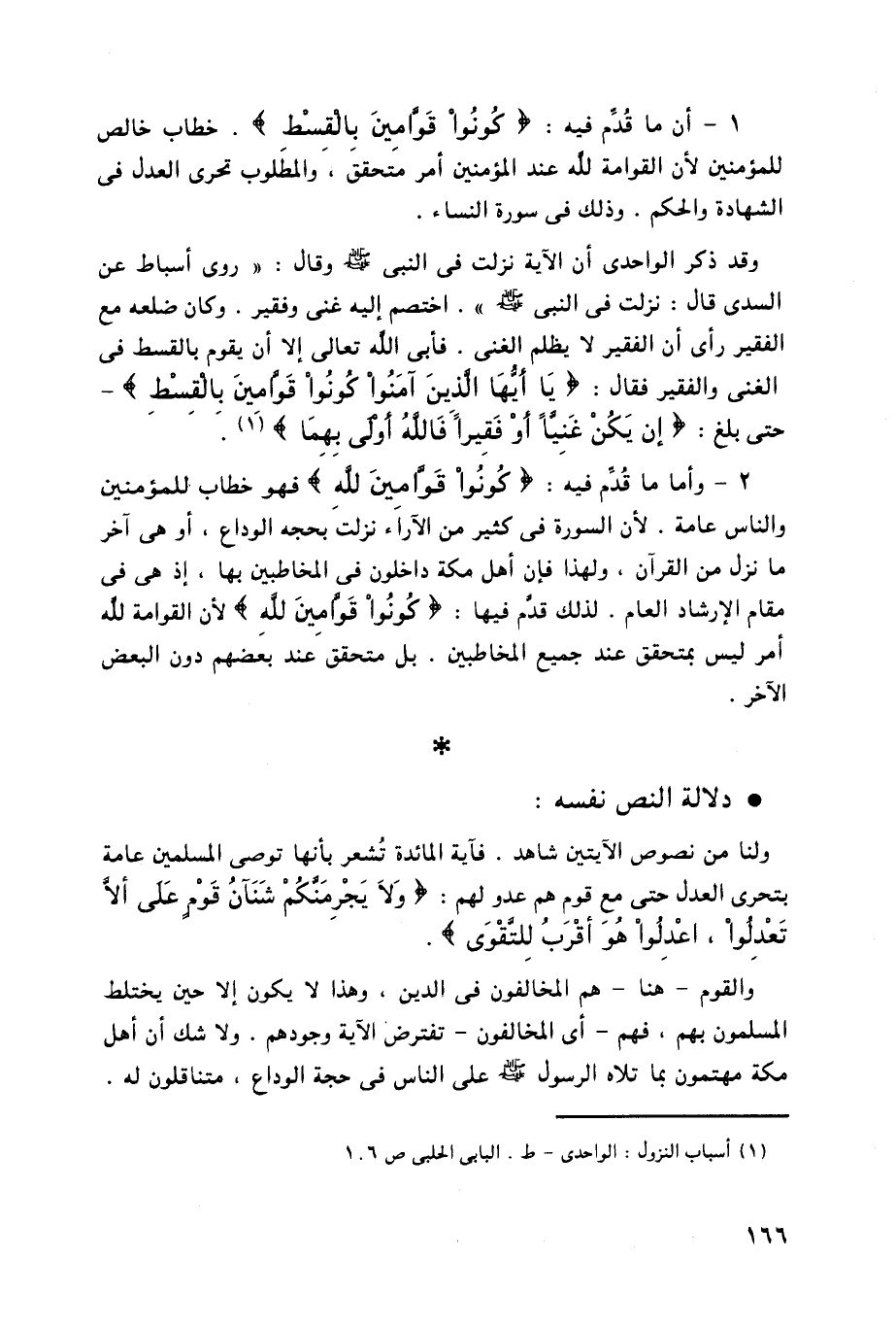 1 - أن ما قُدِّم فيه: (كُونُواْ قَوامينَ بالقسْط) . خطاب خالص