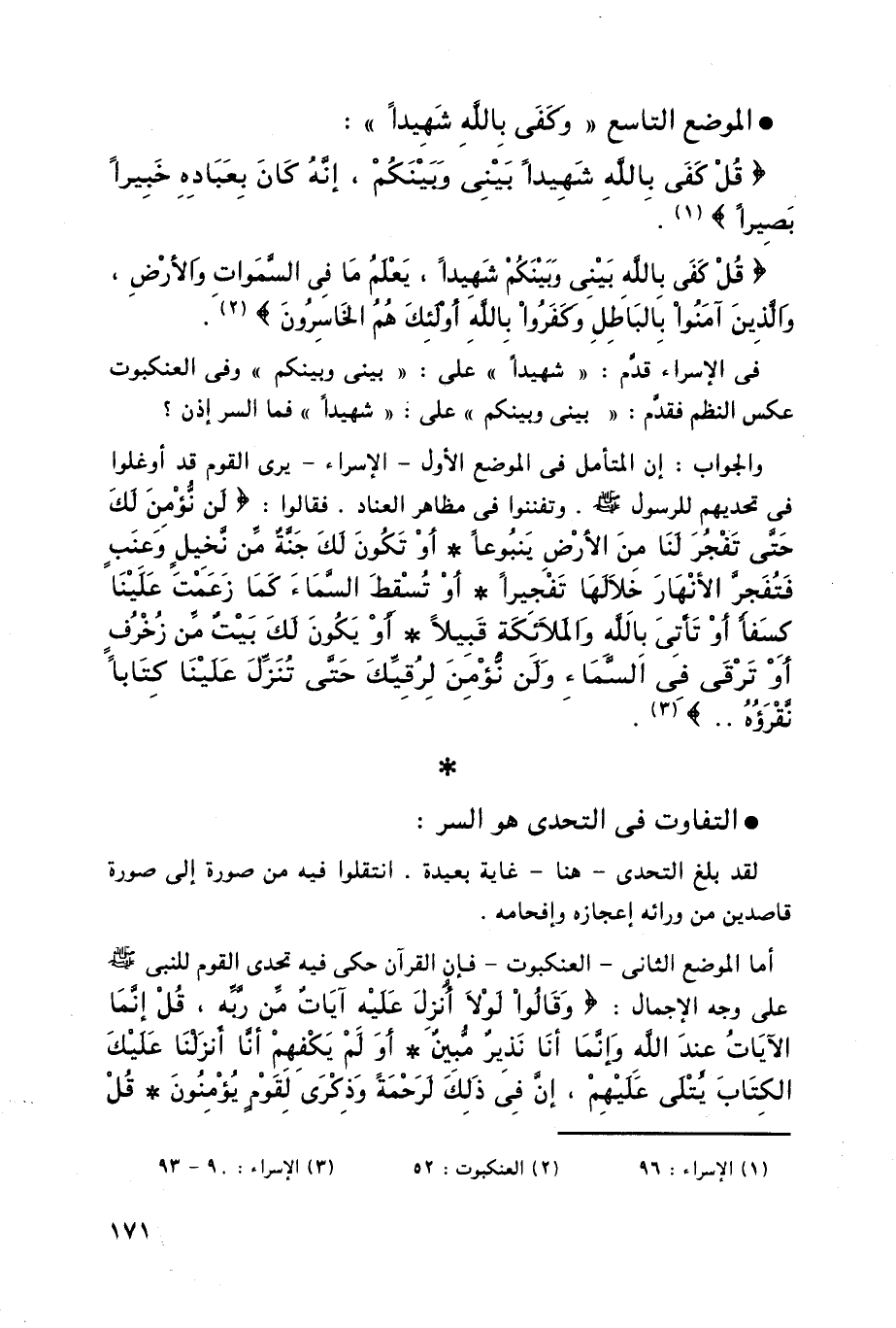 فى الإسراء قدم: " شهيداً " على: " بينى وبينكم "