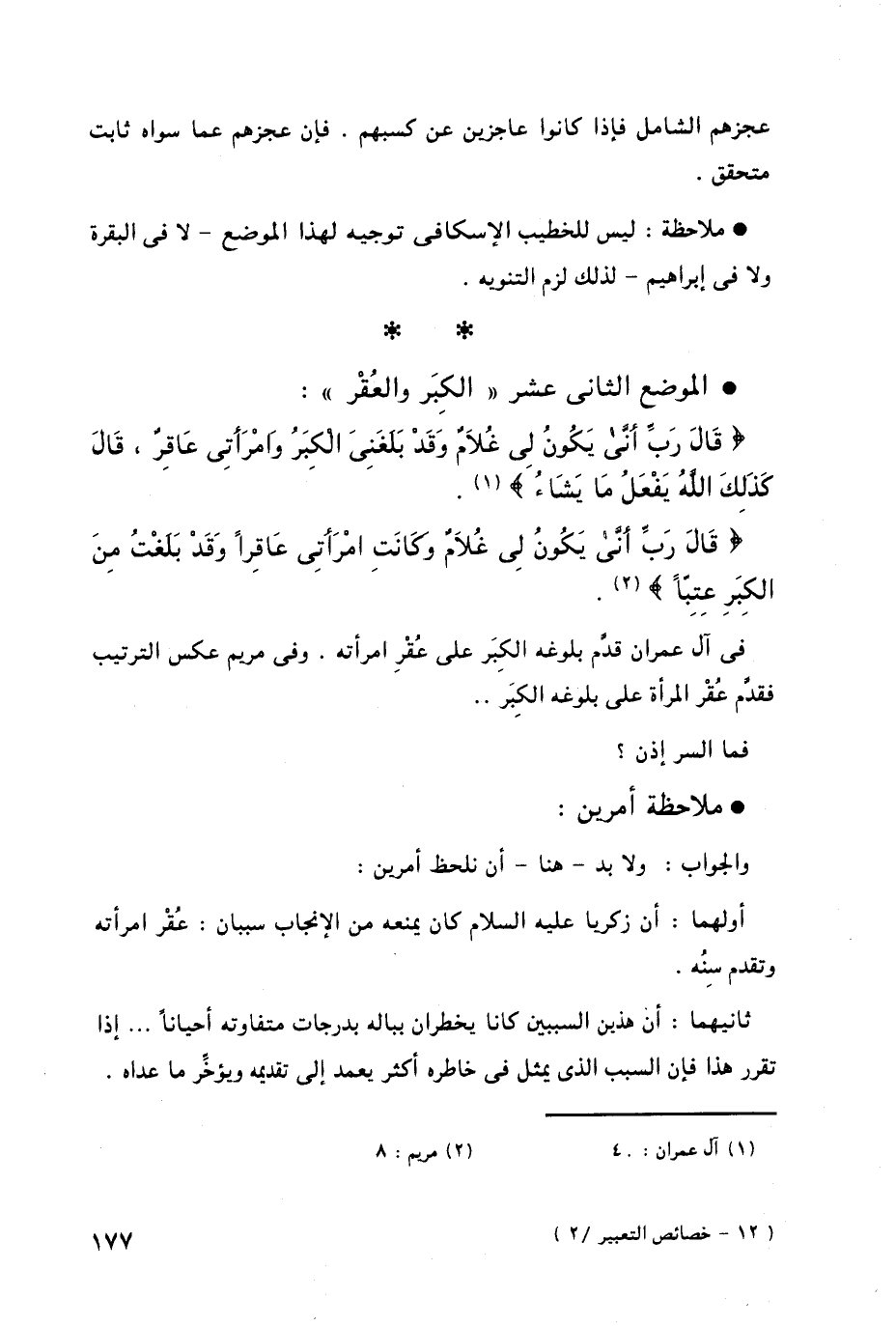فى آل عمران قدم بلوغه الكِبَر على عُقْرِ امرأته.