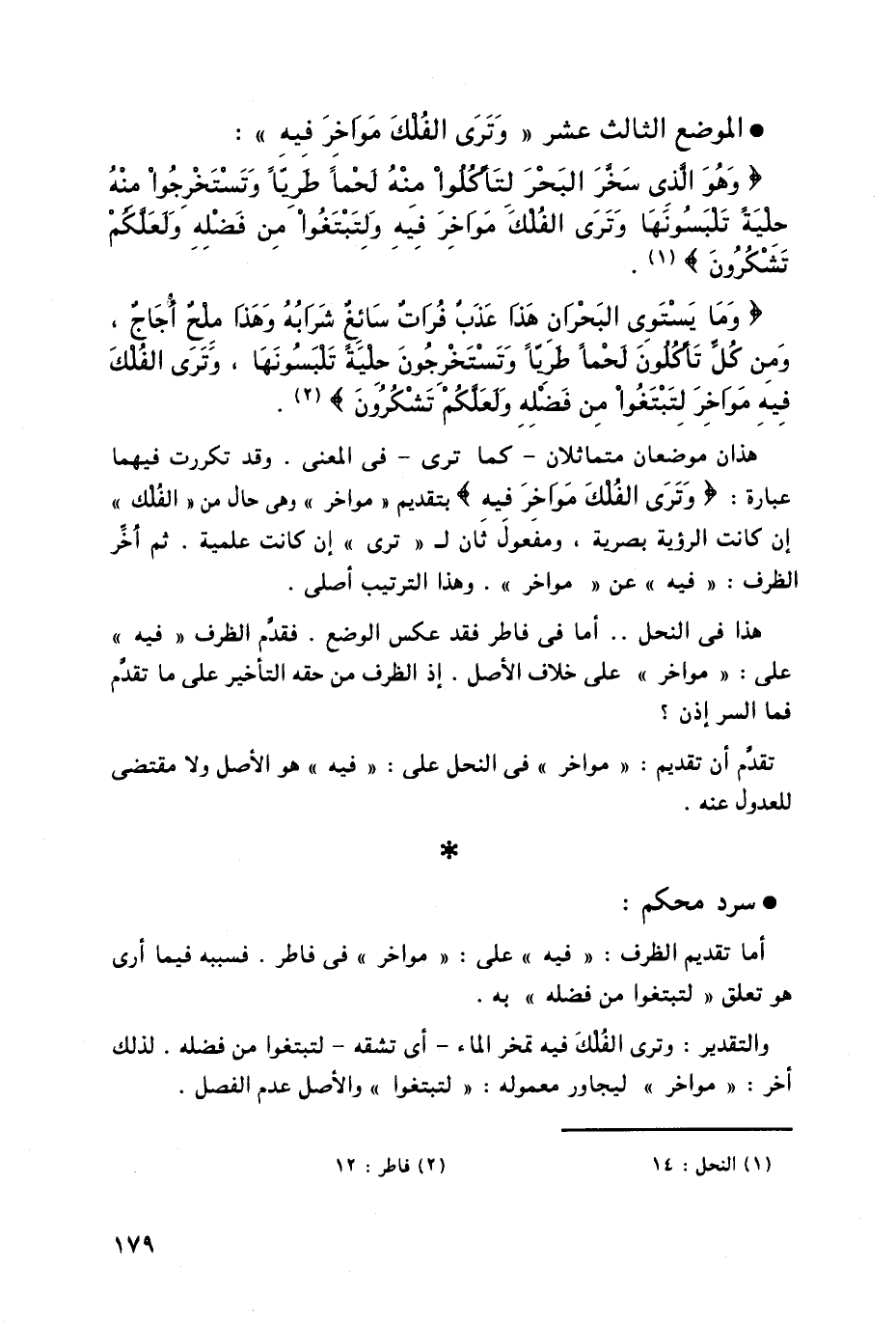 * الموضع الثالث عشر " وَتَرَى الْفُلْكَ مَوَاخِرَ فِيهِ ":