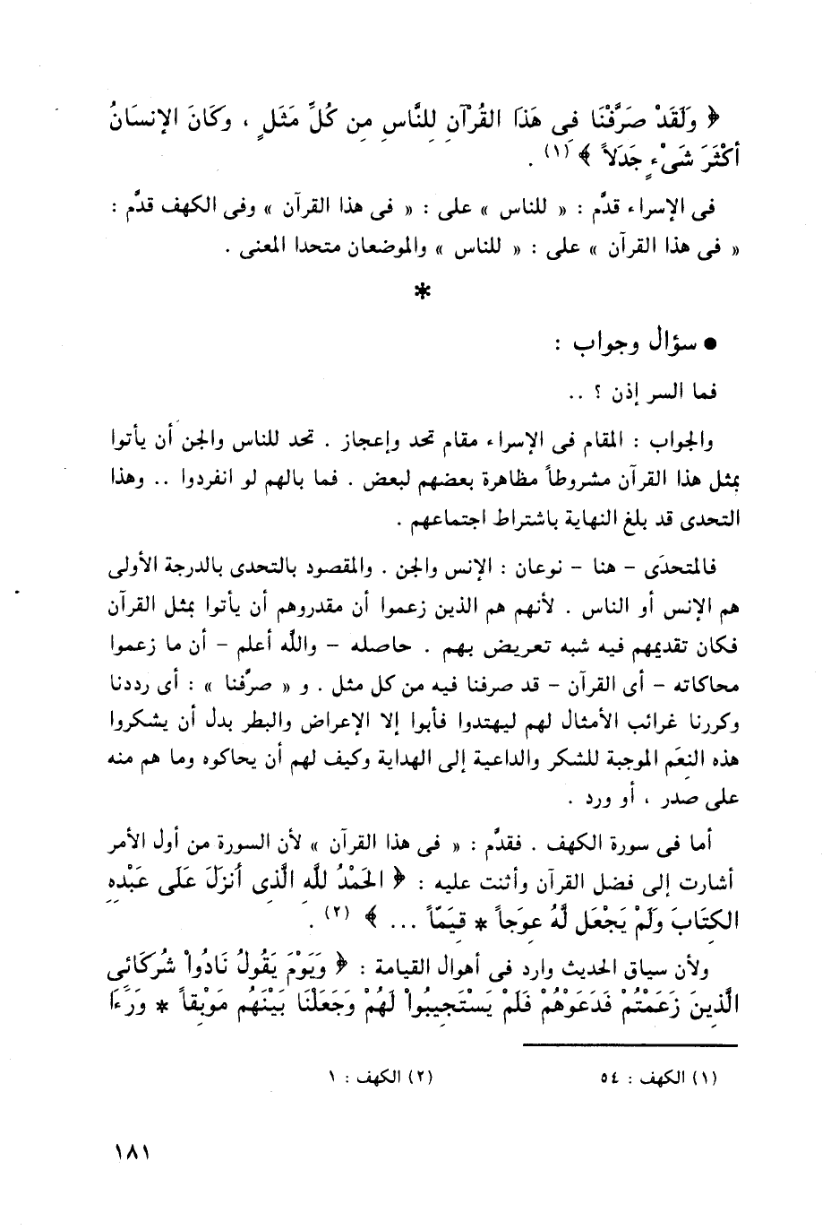 (وَلَقَدْ صَرَّفْنَا فِي هَذَا الْقُرْآنِ لِلنَّاسِ مِنْ كُلِّ مَثَلٍ وَكَانَ الْإِنْسَانُ أَكْثَرَ شَيْءٍ جَدَلًا (54)
