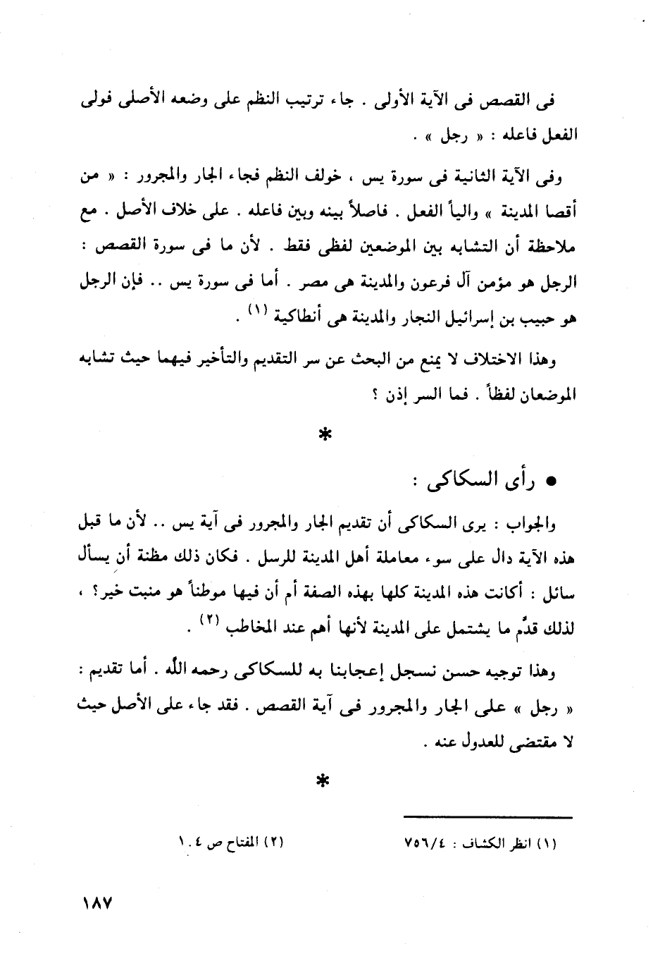 * رأي السكاكي: