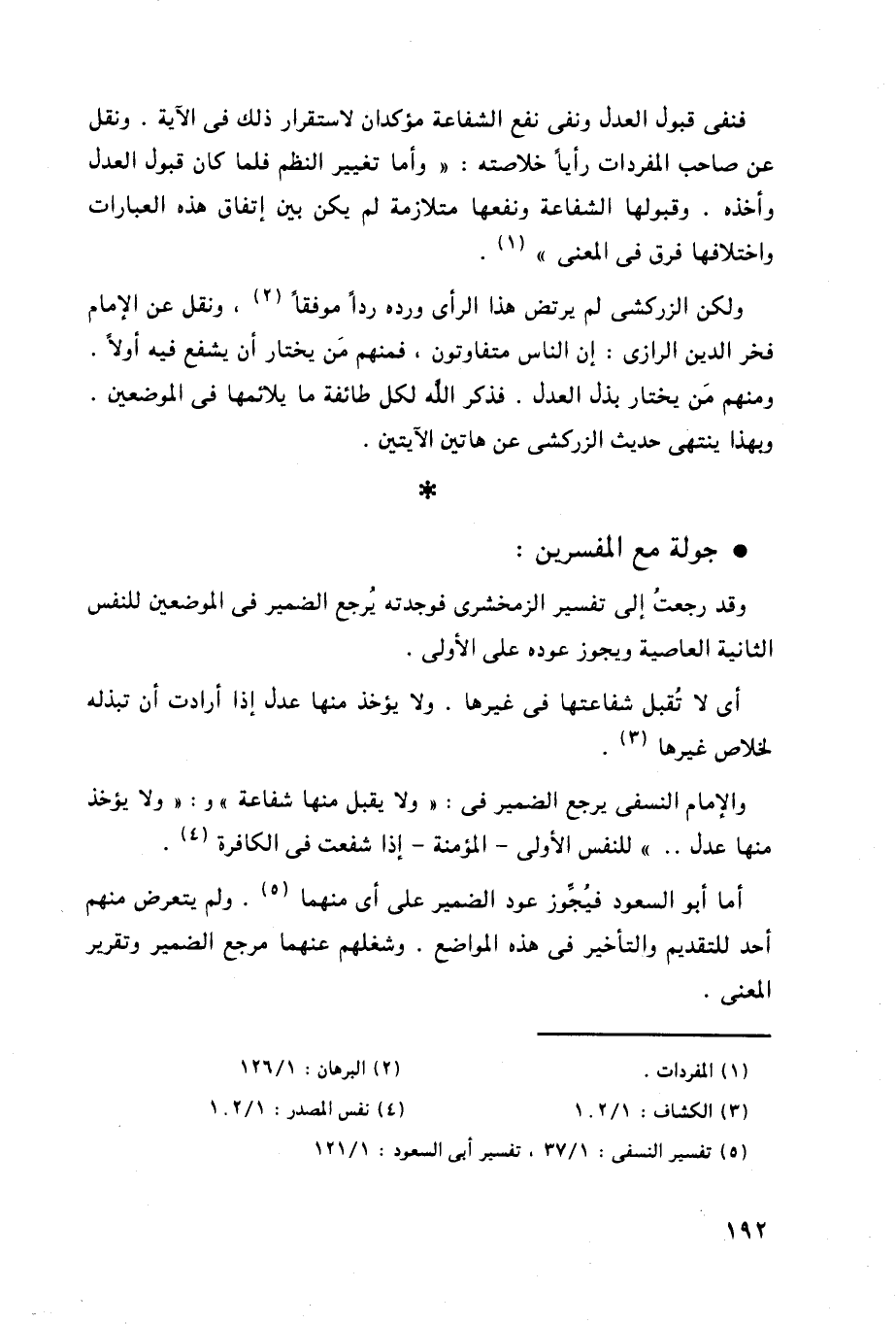والإمام النسفي يرجع الضمير في: " ولا يقبل منها شفاعة "