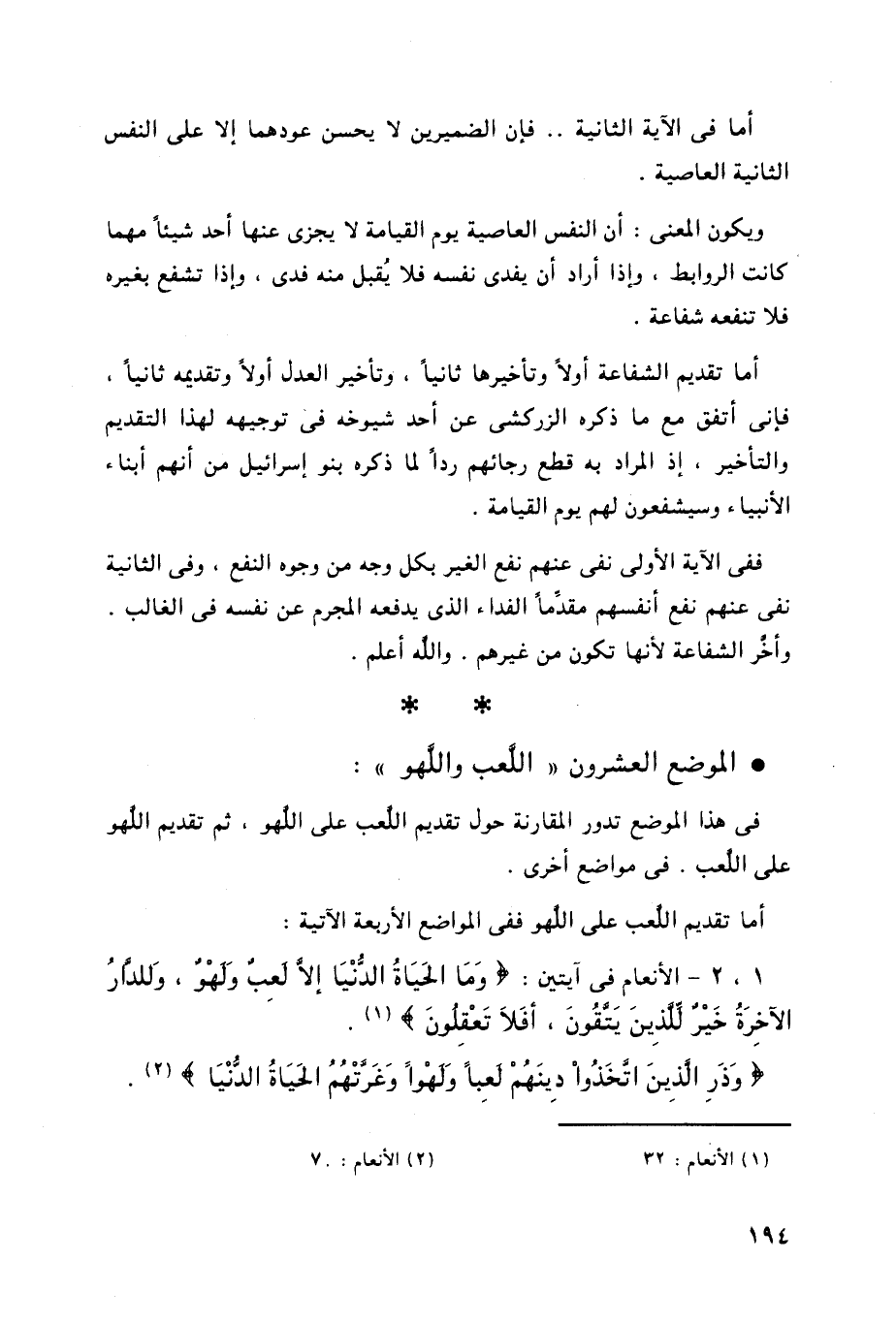 أما تقديم اللعب على اللهو ففى المواضع الأربعة الآتية: