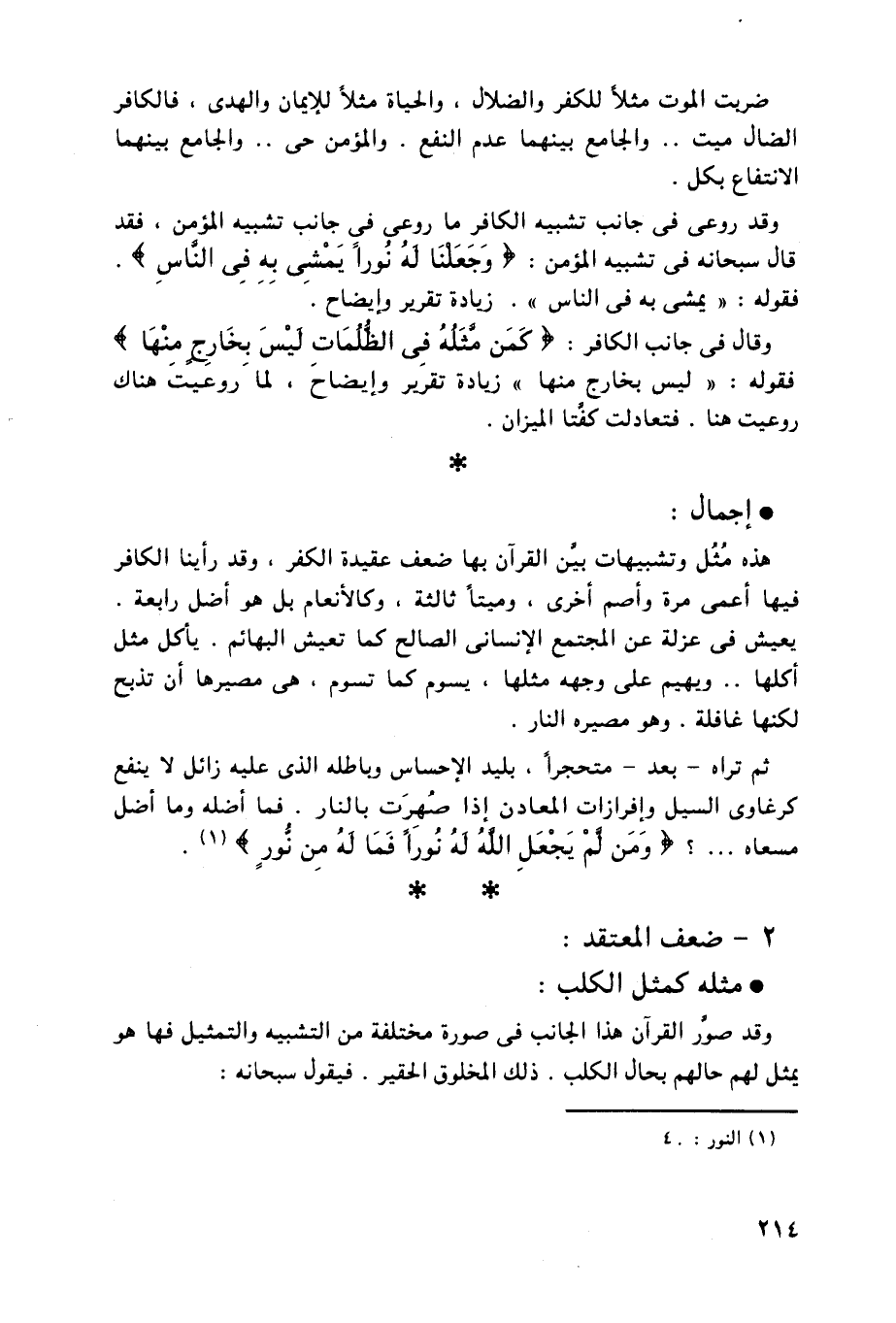 قال سبحانه في تشبيه المؤمن: (وَجَعَلنَا لهُ نُوراً يَمْشِى بِه فِى النَّاسِ) .