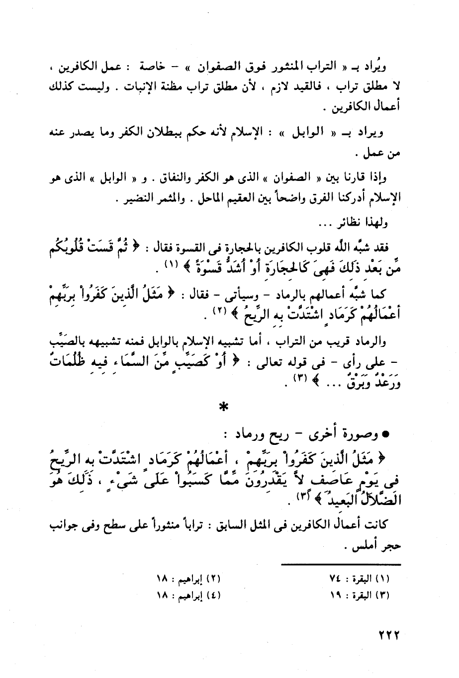 (مَثَلُ الَّذِينَ كَفَرُوا بِرَبِّهِمْ أَعْمَالُهُمْ كَرَمَادٍ اشْتَدَّتْ بِهِ الرِّيحُ فِي يَوْمٍ عَاصِفٍ لَا يَقْدِرُونَ مِمَّا كَسَبُوا عَلَى شَيْءٍ ذَلِكَ هُوَ الضَّلَالُ الْبَعِيدُ (18) .