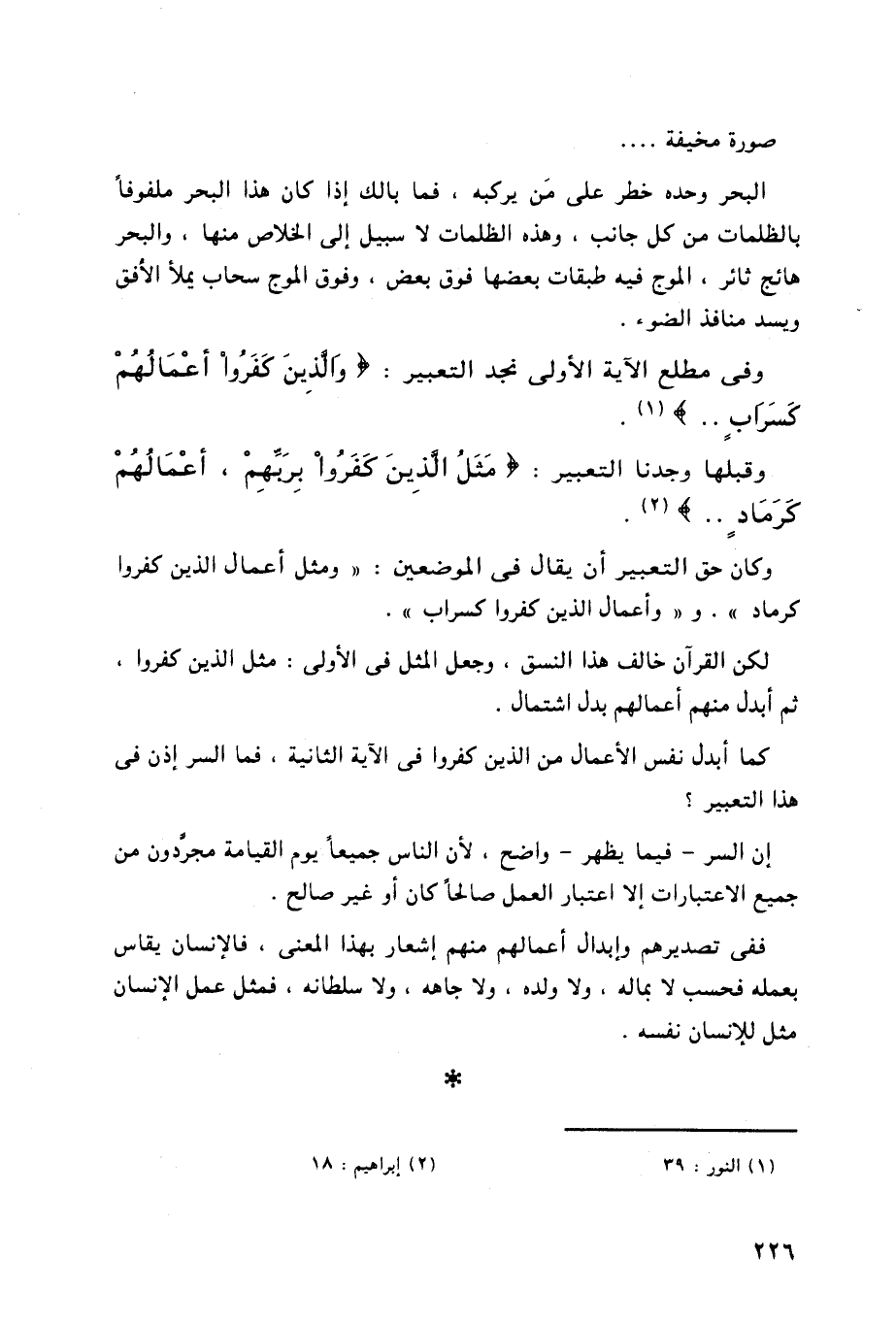 كرماد ". و " وأعمال الذين كفروا كسراب ".