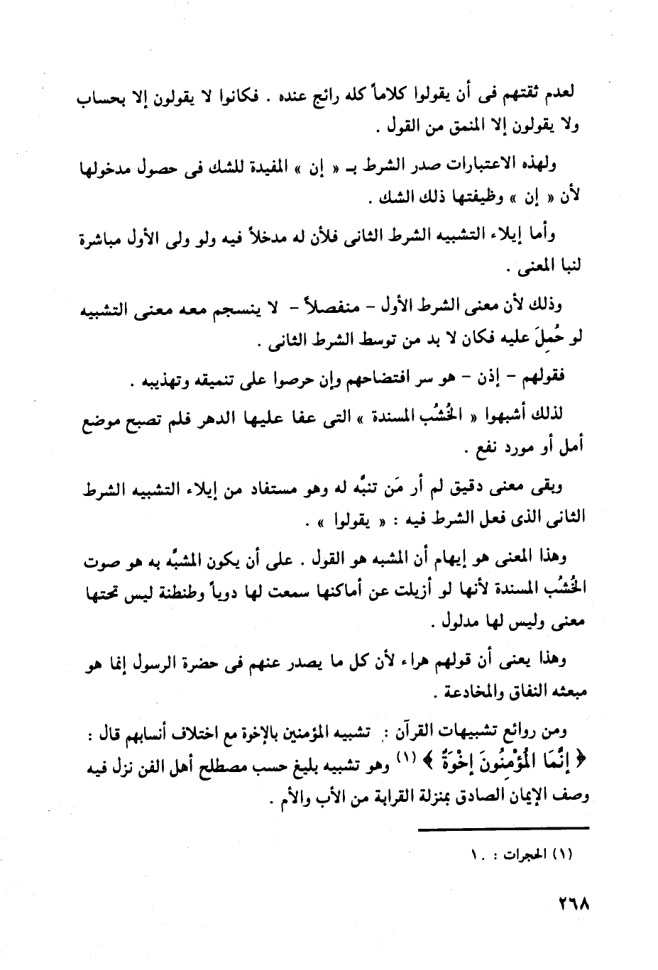 وذلك لأن معنى الشرط الأول - منفصلاً - لا ينسجم معه معنى التشبيه