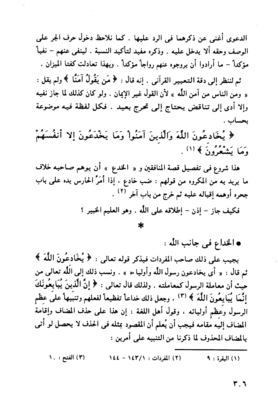 (يُخَادِعُونَ اللَّهَ وَالَّذِينَ آمَنُوا وَمَا يَخْدَعُونَ إِلَّا أَنْفُسَهُمْ وَمَا يَشْعُرُونَ (9) .