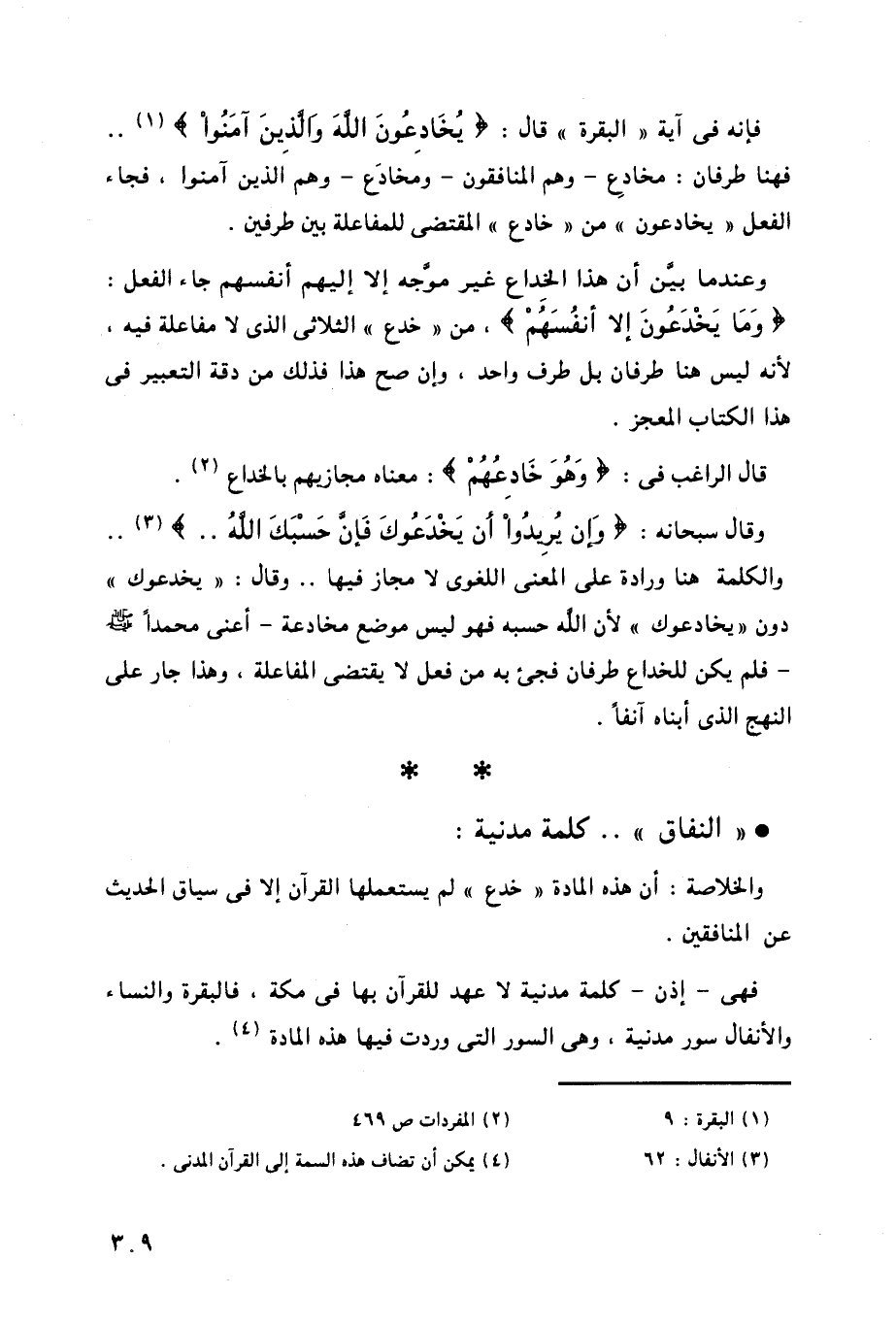 فهى - إذن - كلمة مدنية لا عهد للقرآن بها في مكة، فالبقرة والنساء