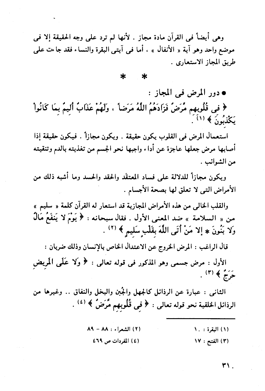 والقلب الخالى من هذه الأمراض المجازية قد استعار له القرآن كلمة " سليم "