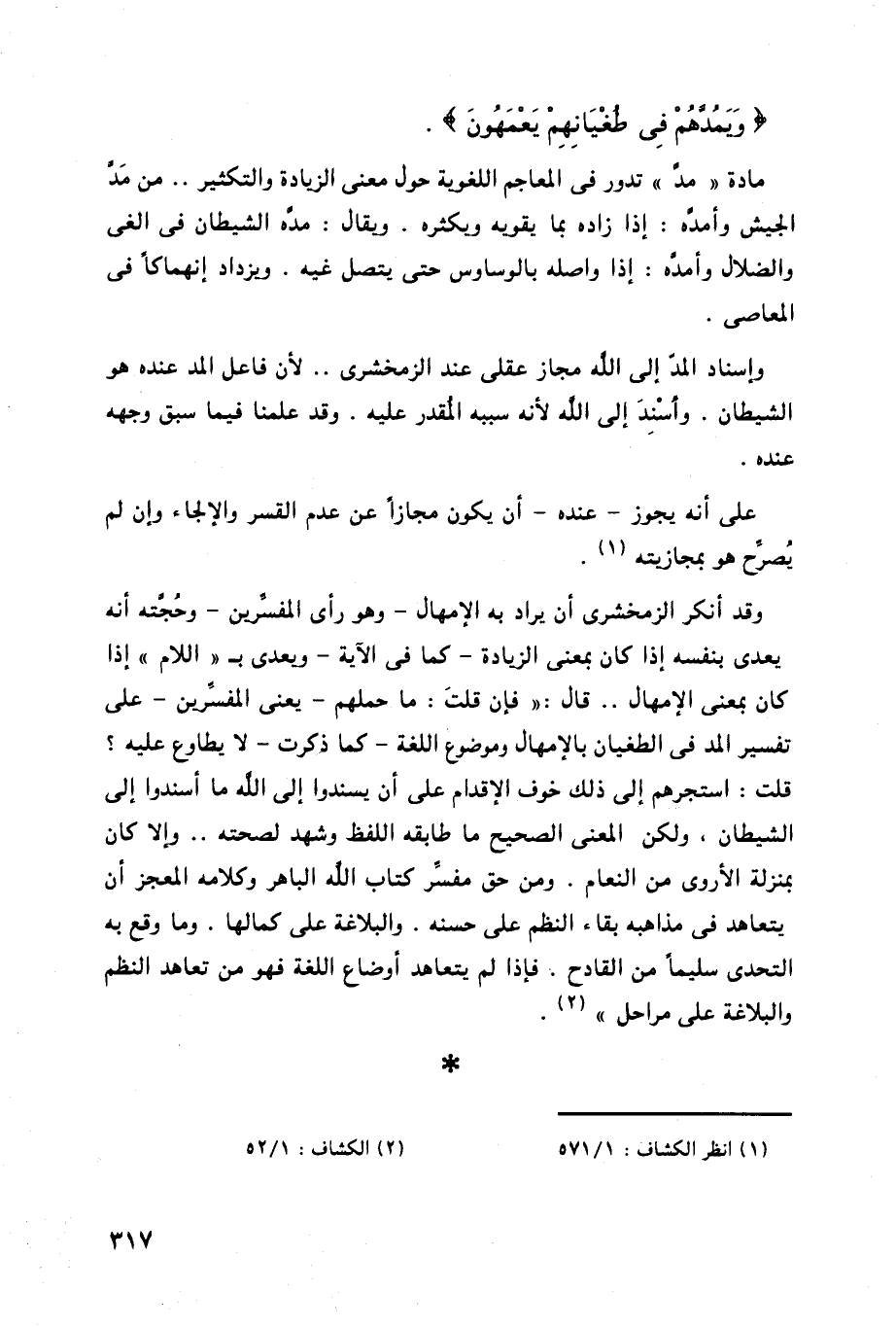 تفسير المد في الطغيان بالإمهال وموضوع اللغة - كما ذكرت - لا يطاوع عليه؟