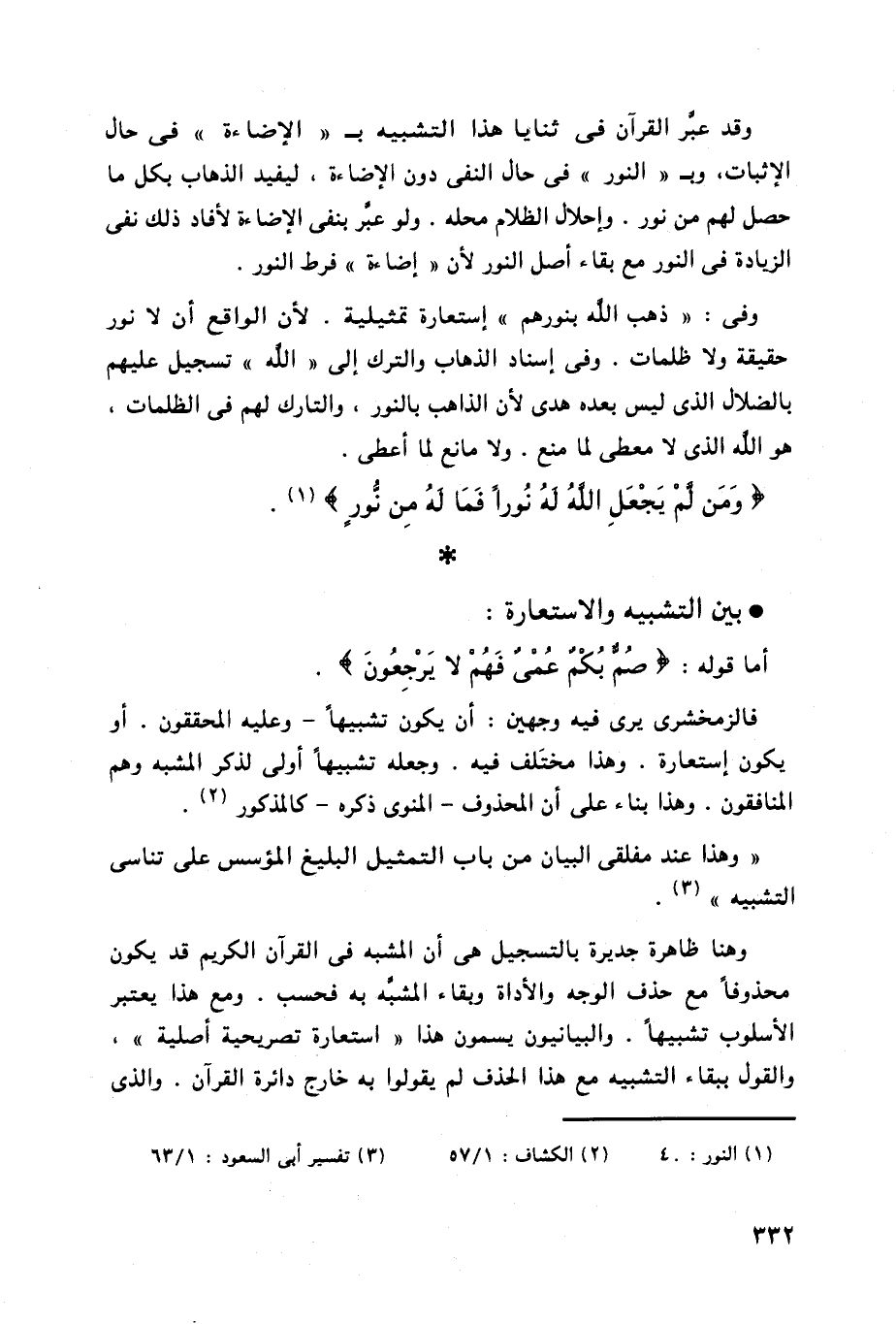 الإثبات، وبـ " النور " في حال النفي دون الإضاءة، ليفيد الذهاب بكل ما