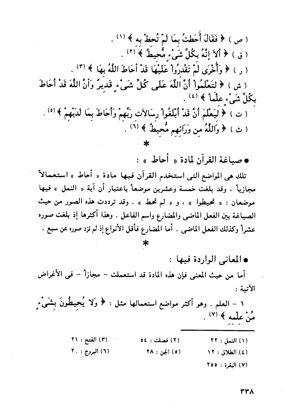 موضعان: " تحيطوا "، و " لم تحط ". وقد ترددت هذه الصور من حيث