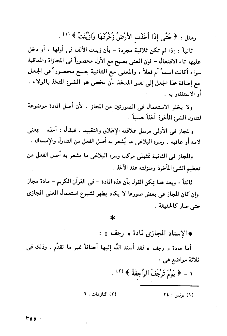 ومثل: (حَتى إذا أخَذَتِ الأرْضُ زُخْرُفَهَا وازينَتْ) .