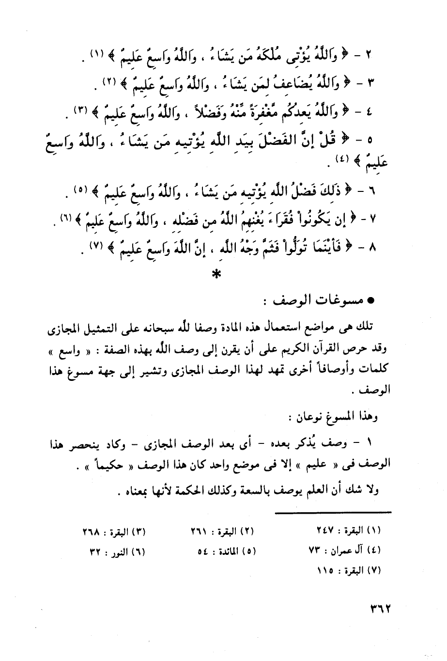 3 - (واللهُ يُضَاعِفُ لِمَن يَشَاءُ واللهُ واسِعٌ عَلِيمٌ) .