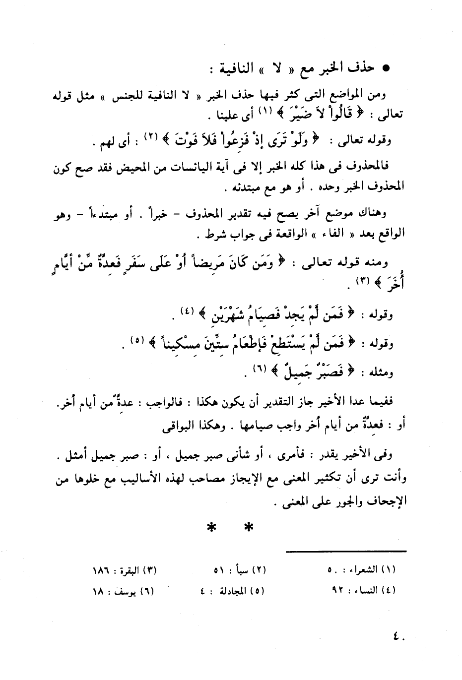 فالمحذوف في هذا كله الخبر إلا في آية اليائسات من الحيض فقد صح كون