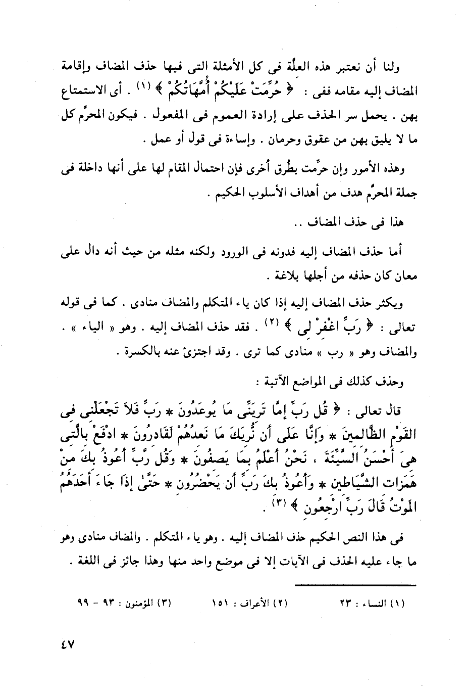 ولنا أن نعتبر هذه العلة فىِ كل الأمثلة التي فيها حذف المضاف وإقامة